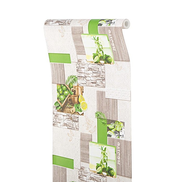 Обои моющиеся «Мохито – 05. Саратовские обои», на бумажной основе, 0.53×10.05 м, цвет бежевый/зелёный