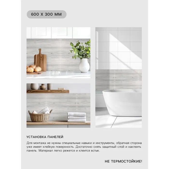 Панель ПВХ самоклеящаяся TAKE IT EASY «Доска», 600×300 мм, цвет светло - серый