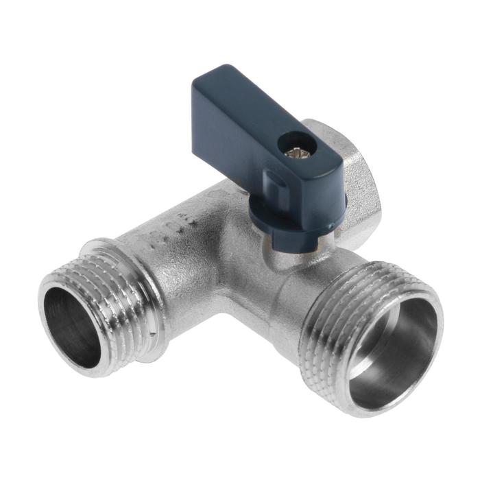 Кран шаровой AQUALINK, трехпроходной, 1/2" x 3/4" x 1/2", гайка/штуцер/штуцер, ручка-флажок