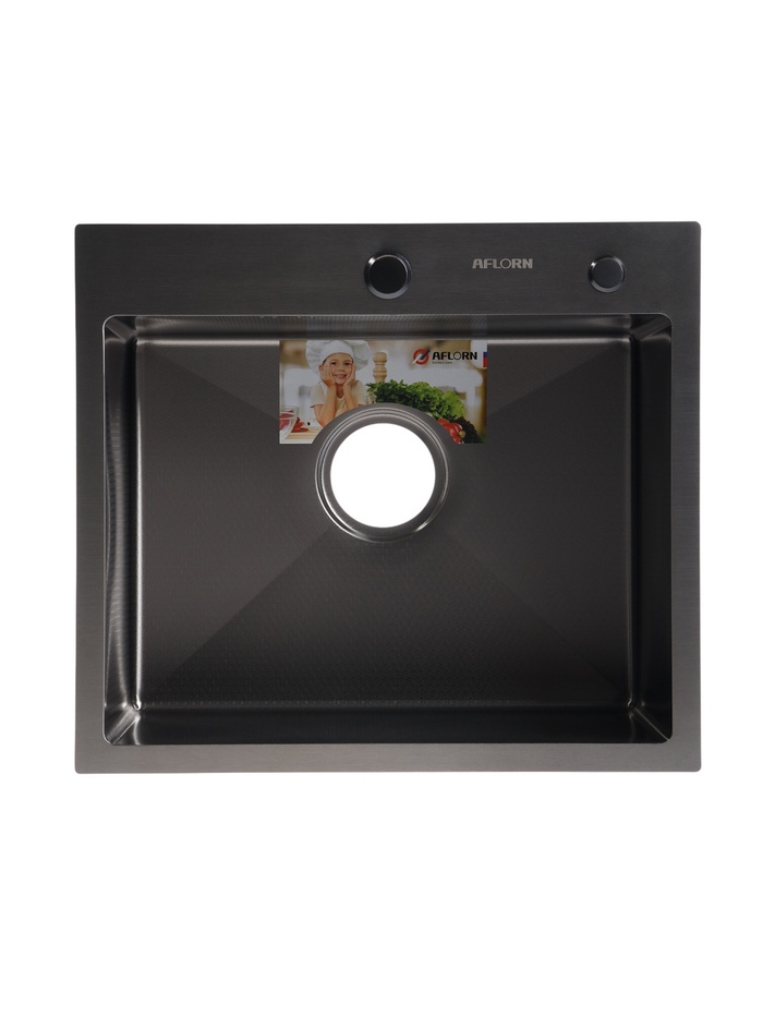 Мойка кухонная AFLORN AF96050DF, врезная, S=3.0 и 0.8 мм, 60×50 см, сифон, черная