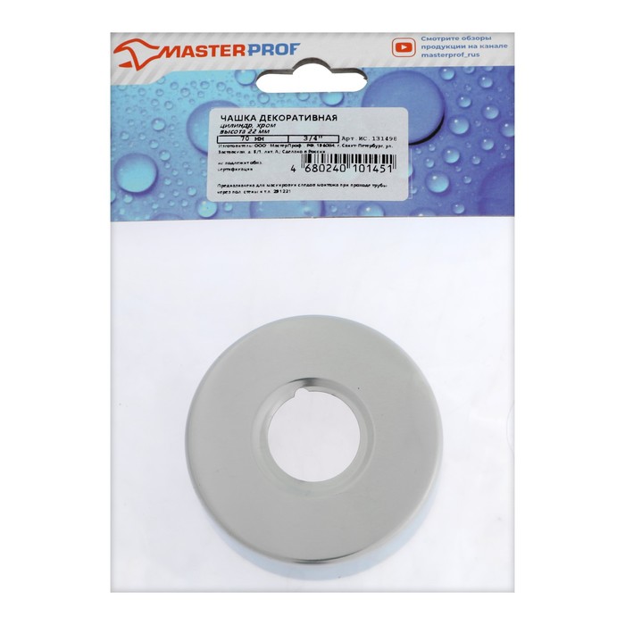 Декоративный отражатель MasterProf ИС.131498, 3/4", 70×25×20 мм, цилиндр, нерж. сталь, хром