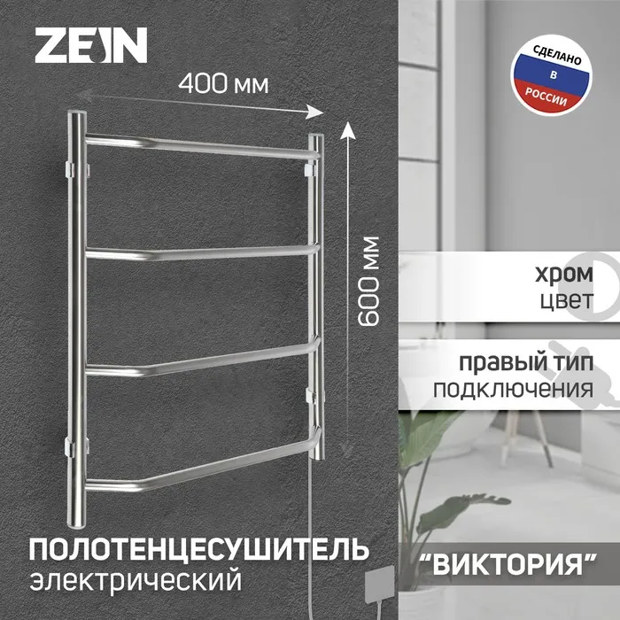 Полотенцесушитель электрический ZEIN PE-05, «Виктория», 400×600 мм, 4 перекладины