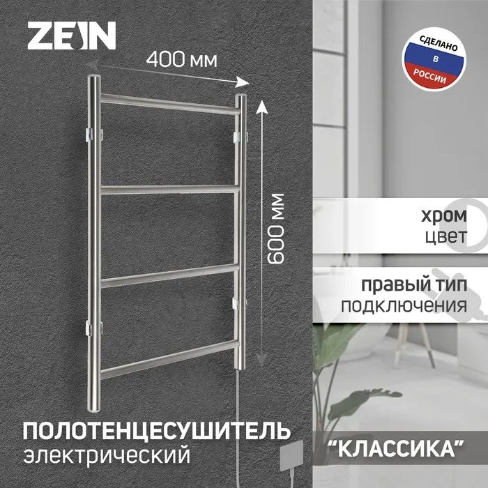 Полотенцесушитель электрический ZEIN PE-04 «Классика», 400×600 мм, 4 перекладины