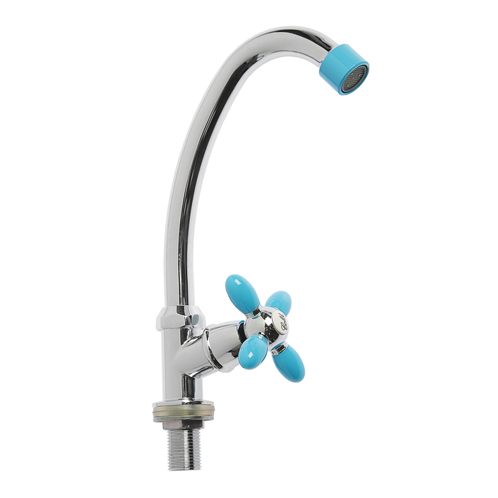 Смеситель для кухни Accoona A4882K-1, двухвентильный, с гибким изливом, голубой