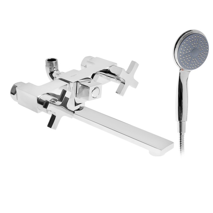 Смеситель для ванны Accoona A6275, двухвентильный, дивертор в корпусе, душевой набор, хром