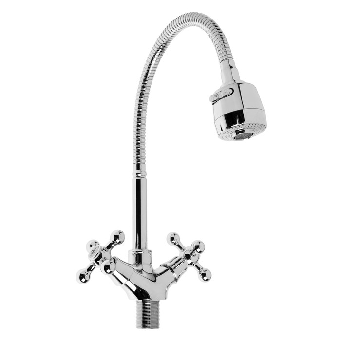 Смеситель для кухни Accoona A4871, двухвентильный, гибкий излив, силумин, хром