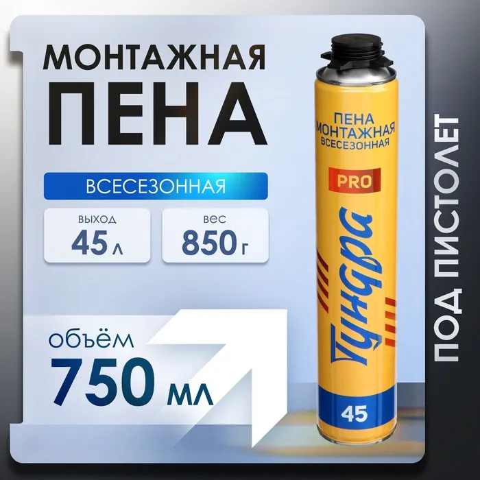Пена монтажная ТУНДРА ПРОФИ, пистолетная, всесезонная, выход 45 л, 750 мл