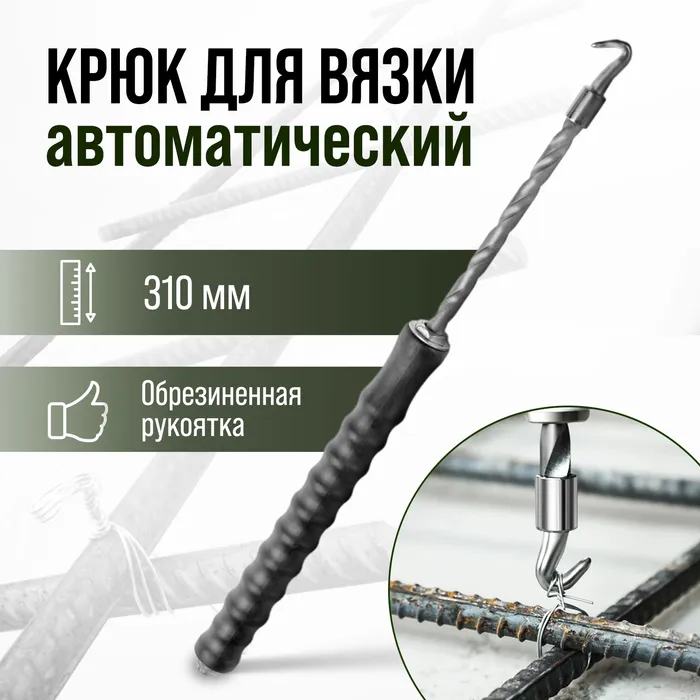 Крюк для вязки арматуры ТУНДРА, автоматический, обрезиненная рукоятка, 310 мм