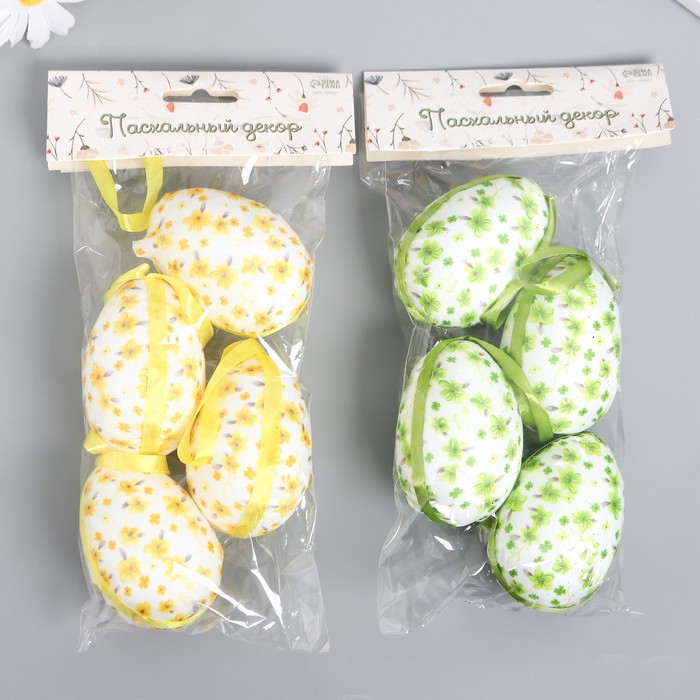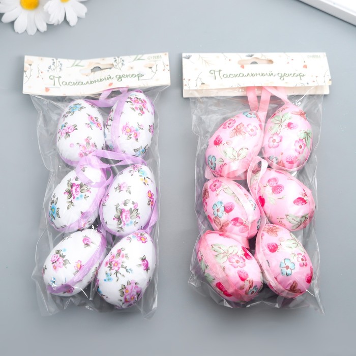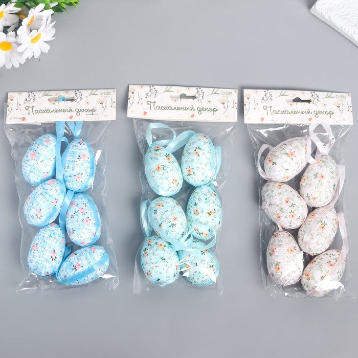 Подвесное украшение пасхальное «Яйцо с цветочками», набор 6 шт., 6×4 см, МИКС