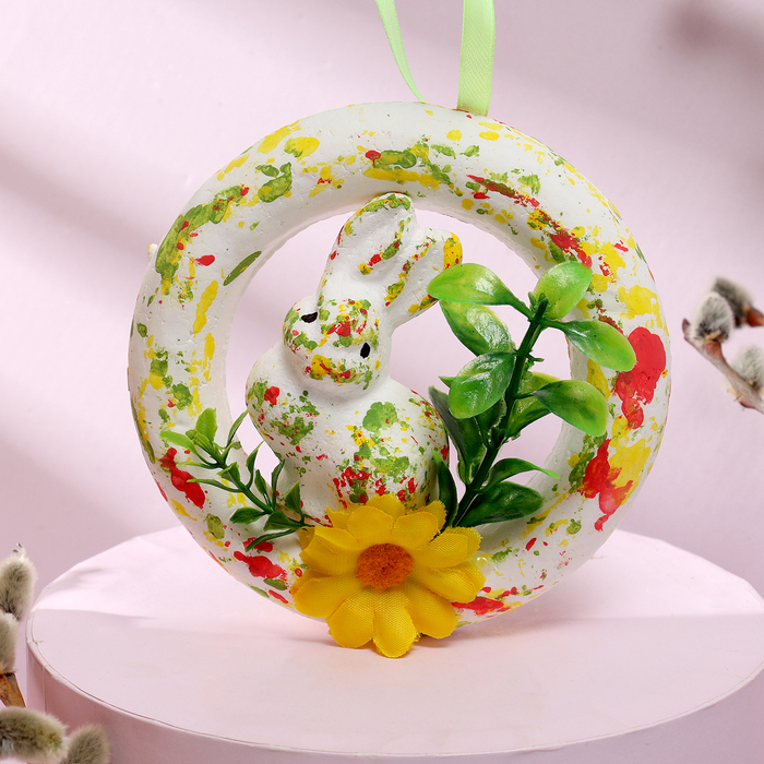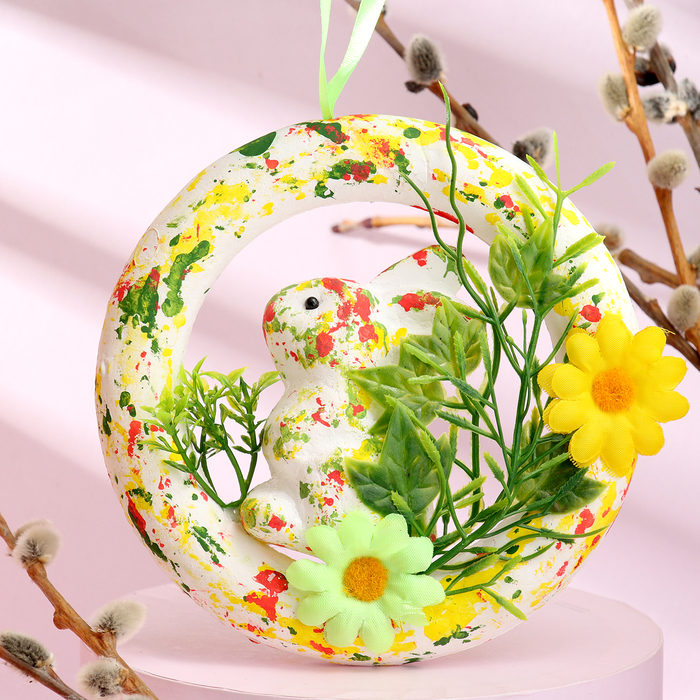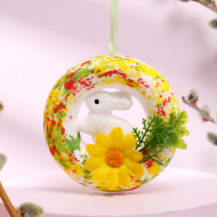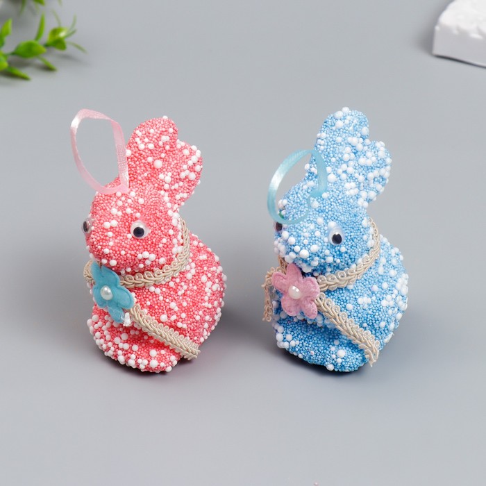 Подвесное украшение пасхальное «Кролик: посыпка, цветочек на шее», набор 2 шт., 9 см, МИКС