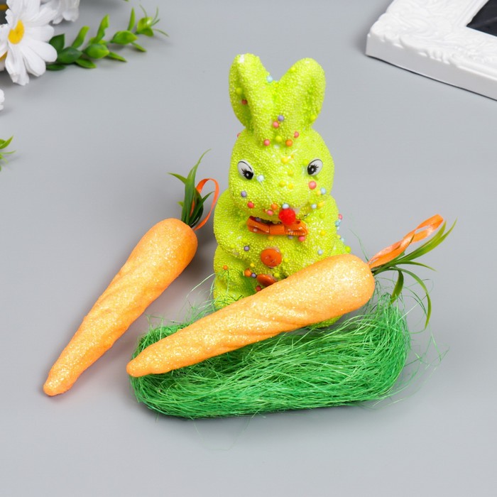 Пасхальный декор «Зайчик с морковками и травкой», набор 4 шт., 15 см, настольная фигурка, МИКС