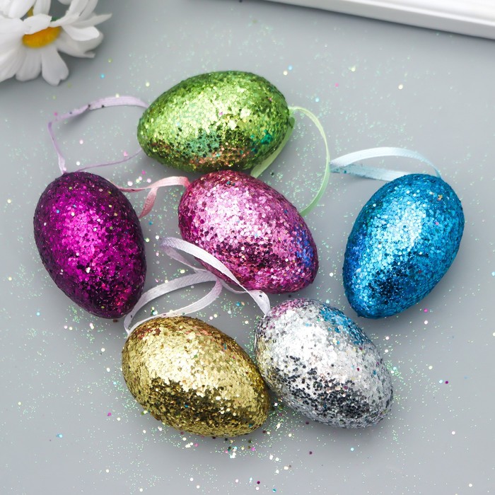 Подвесное украшение пасхальное «Яйцо: блёстки», набор 6 шт., разноцветные, 6×4×4 см