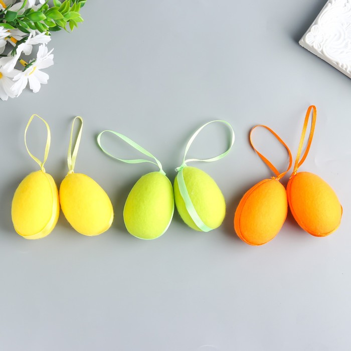 Подвесное украшение пасхальное «Яйцо с ворсом», набор 6 шт., разноцветные, 4×4×6 см