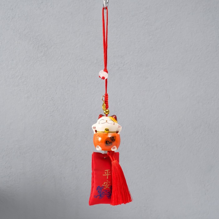 Подвеска от сглаза «Манэки-нэко с мешком удачи», оранжевый, 3.8×4×21 см