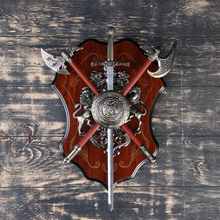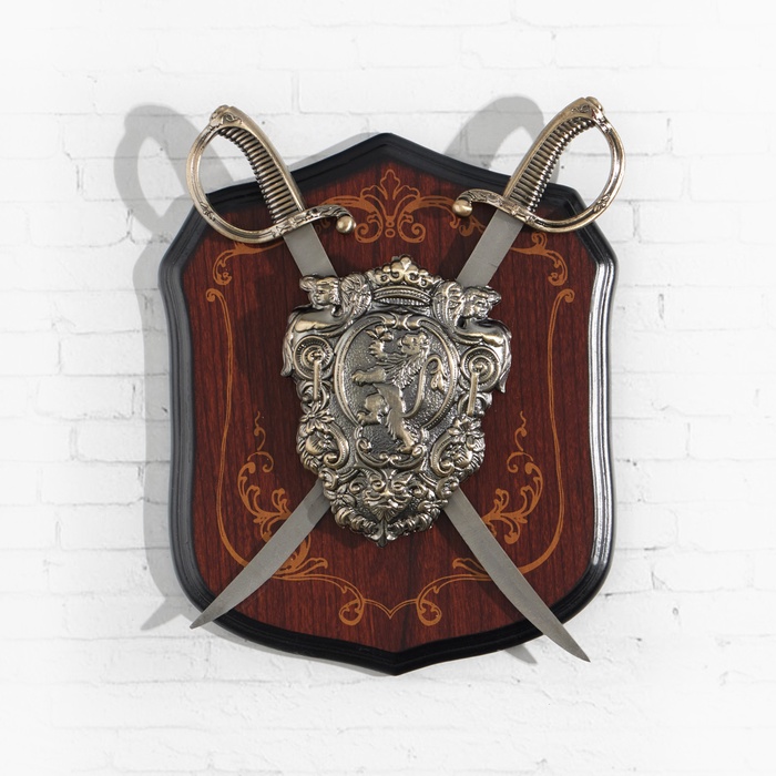 Панно на стену «Геральдика. Лев и две сабли», декор настенный, щит декоративный