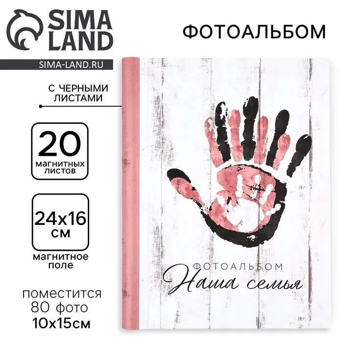 Фотоальбом на 80 фото, 20 чёрных магнитных листов «Наша семья»