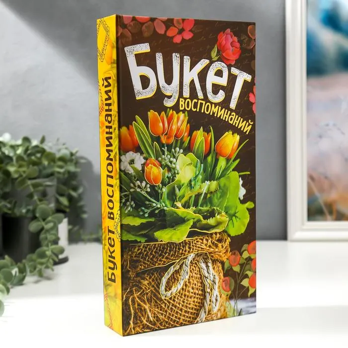 Фотоальбом 300 фото 10х15 см "Букет воспоминаний" эффект золотая обводка 33х17,5 см