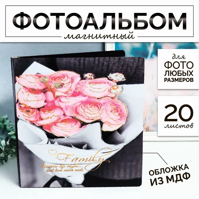 Фотоальбом магнитный на 20 листов «Букет пионовидных роз», 34×4×33 см
