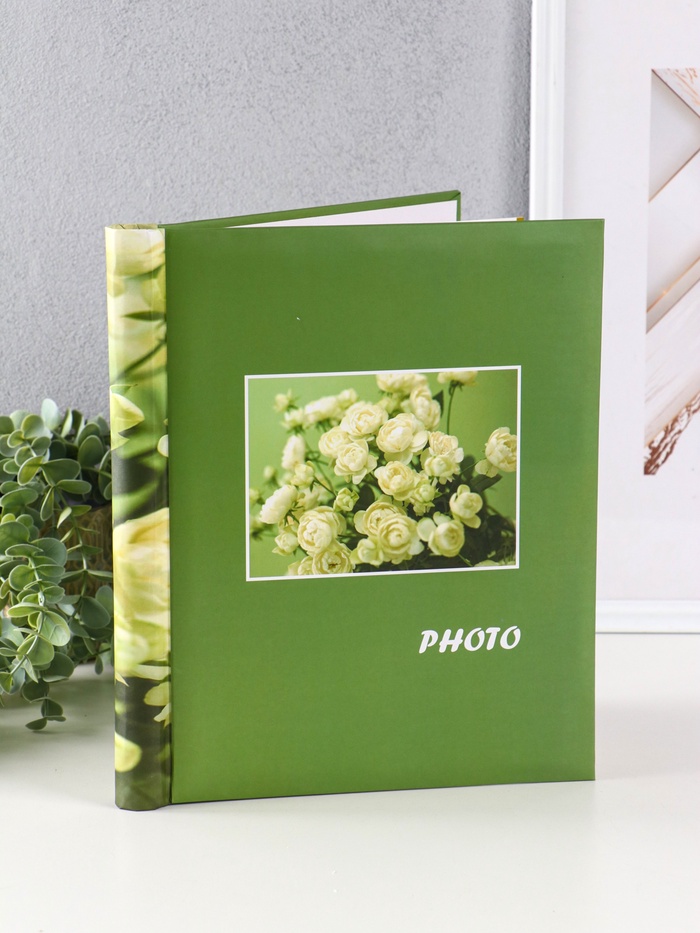 Фотоальбом магнитный на 10 листов «Розы», 23×28 см, зеленый, переплёт: спираль