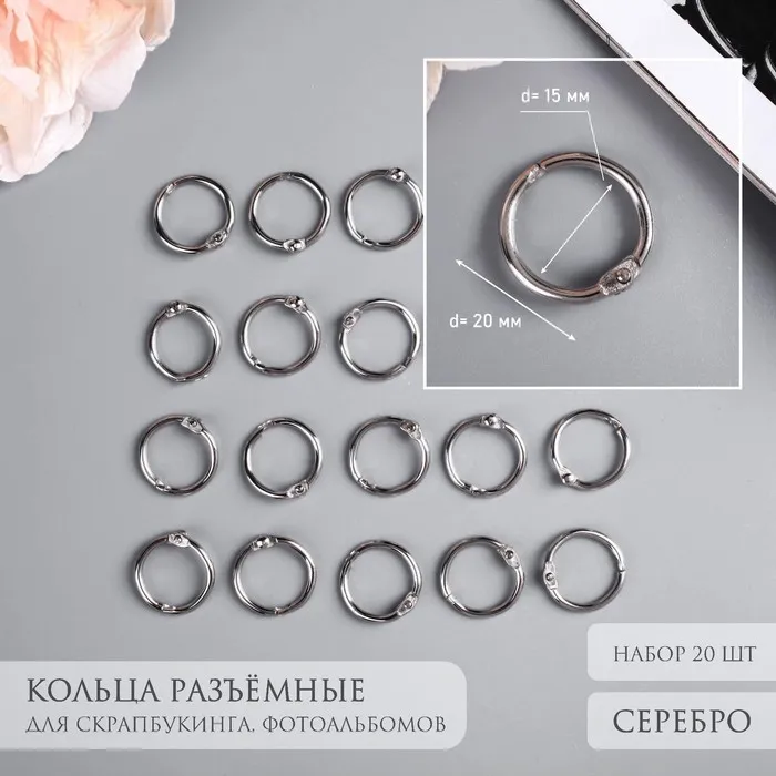 Кольца для творчества (фотоальбомов) "Серебро" внутр. d= 1,5 см внешн. d=2 см н-р 20 шт
