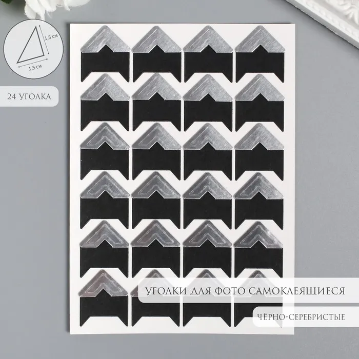 Набор уголков с кармашком для фотографий 24 уголка "Стиль" серебро 12,5х9 см