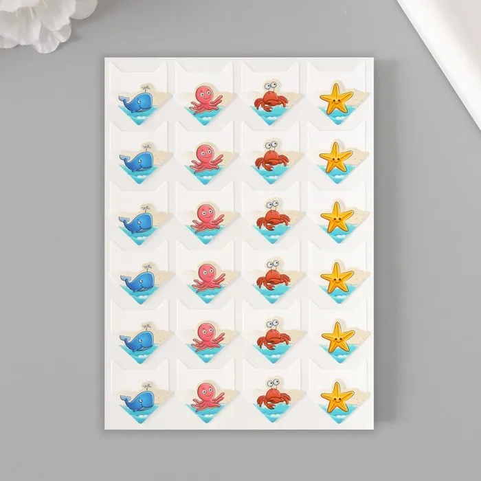 Набор уголков с кармашком для фотографий 24 уголка "Морские обитатели" 12,5х9 см