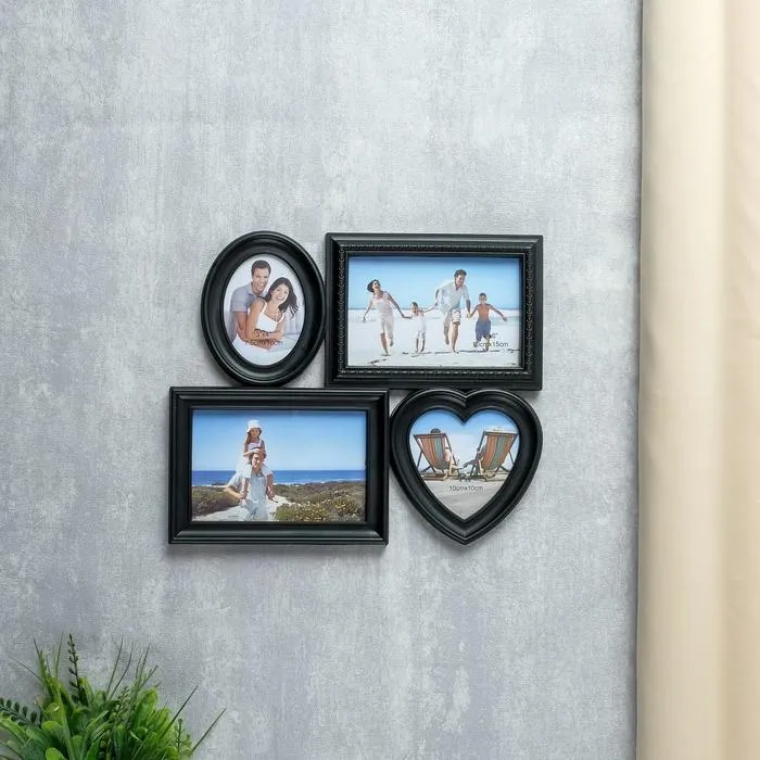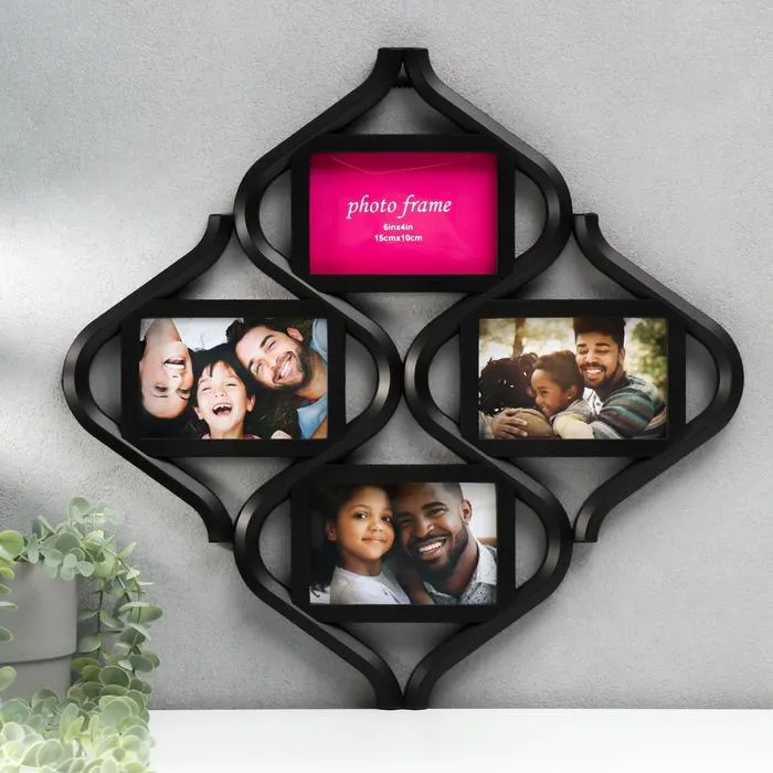 Фоторамка-коллаж на 4 фото 10×15, 9×9, 6.5×9 см «Мультирамка», пластик, чёрная, 25.5×30 см
