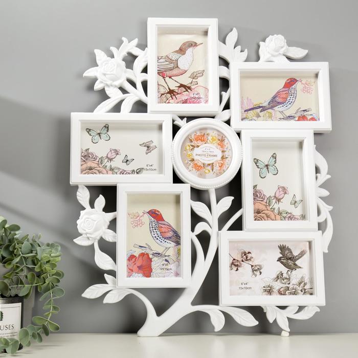 Фоторамка-коллаж на 7 фото 10×10 см, 10×15 см «Розовый сад», белая, 56×46×3 см