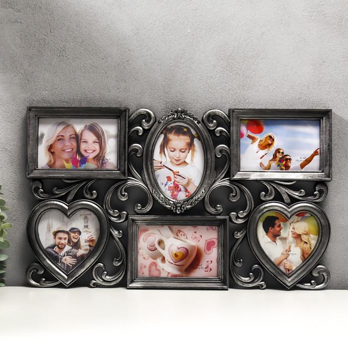 Фоторамка-коллаж на 6 фото 10×15, 10×10 см «Завитки», пластик, мультирамка, серебро, 31.5×53 см