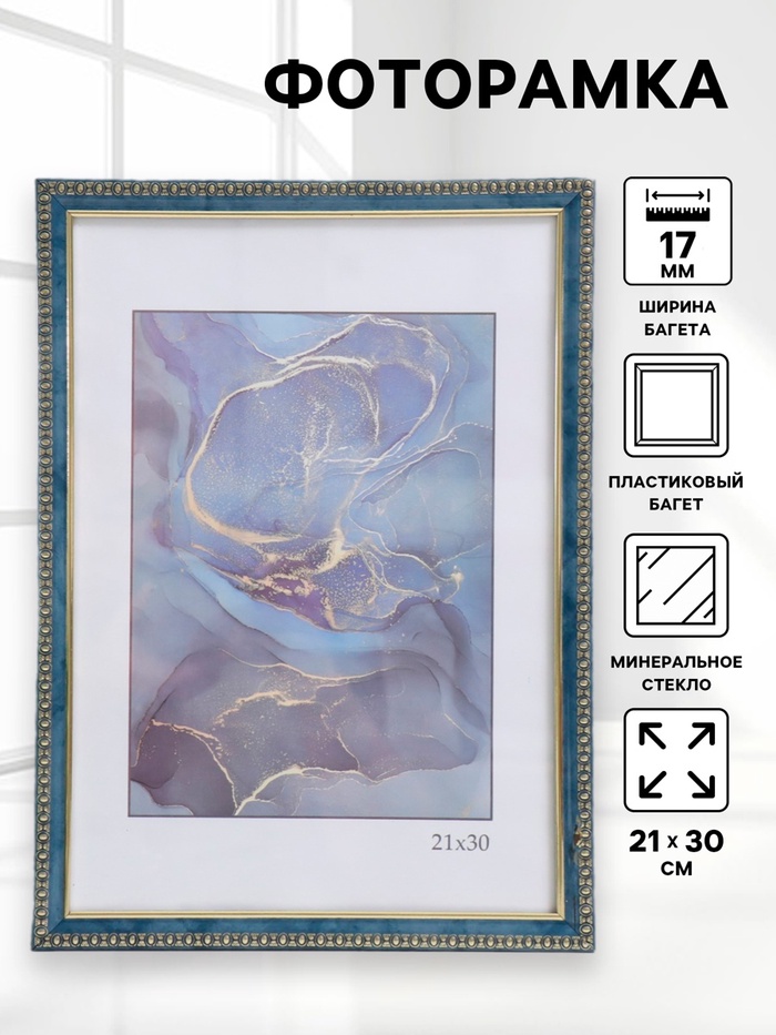 Фоторамка для фото 21×30 см «Ненси», пластик, голубой, (стекло)