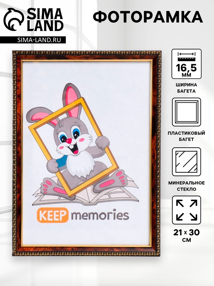 Фоторамка для фото 21×30 см Keep memories, махагон, (пластиковый экран), дерево