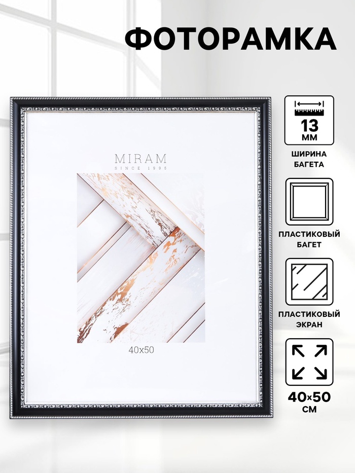 Фоторамка для фото 40×50 см «МИРАМ», пластик, чёрный, (пластиковый экран)