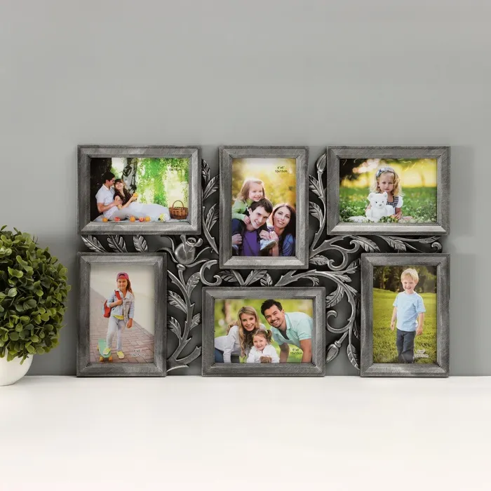 Фоторамка пластик на 6 фото 10х15 см "Бутон" серебро 52х32 см