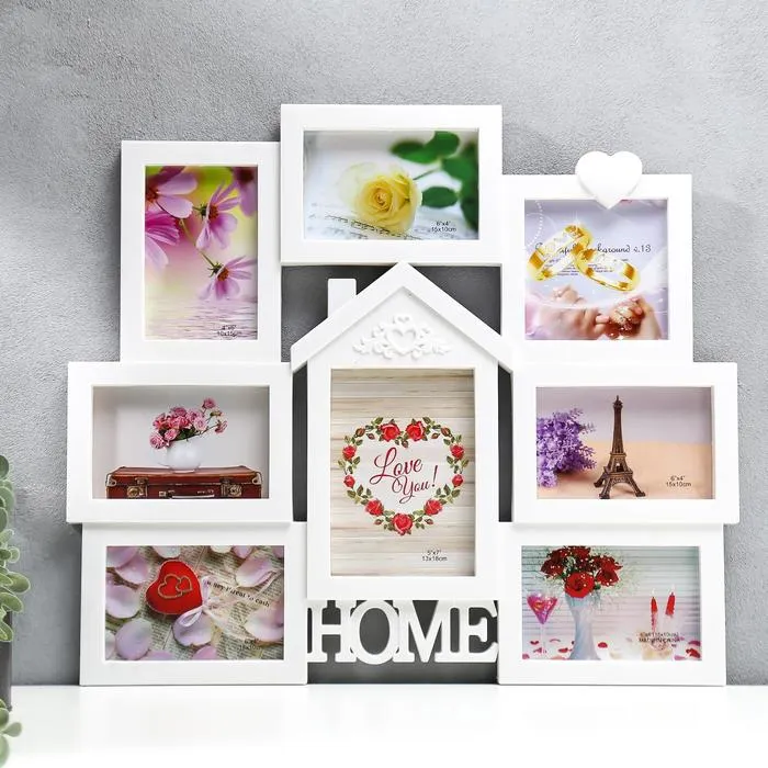 Фоторамка пластик на 8 фото 13х13 см 10х15 см 13х18 см "Домашний уют" 45,5х52 см