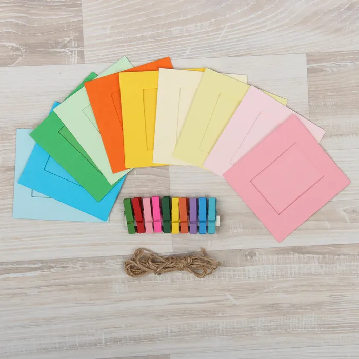 Набор фоторамок на прищепках "Цветные моменты", веревка: 2,5 м, прищепки: 0,6 × 3.5 × 0.8 см, фоторамки 10 шт., для фото 8,8 × 9,3 см