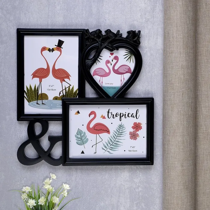 Фоторамка пластик на 3 фото 11х11, 13х18 см "Птицы на веточке" чёрная 29х29 см