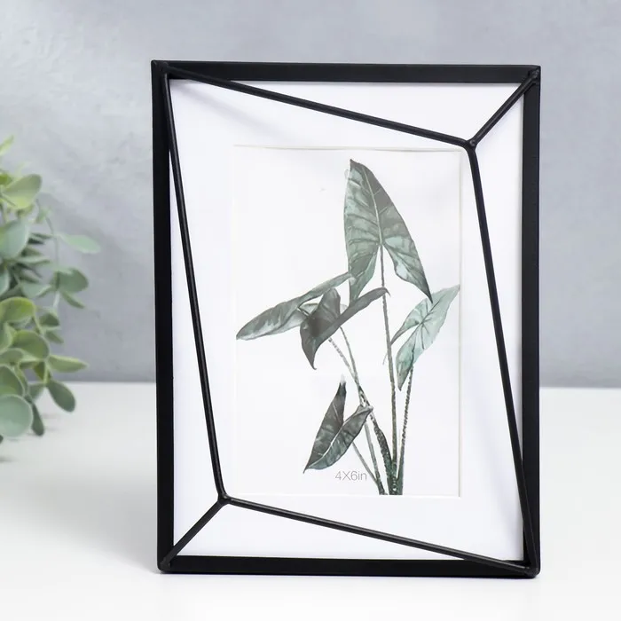 Фоторамка металл на 1 фото 10х15 см "Лофт. Преломление углов" чёрная, паспарту 20х15х3 см