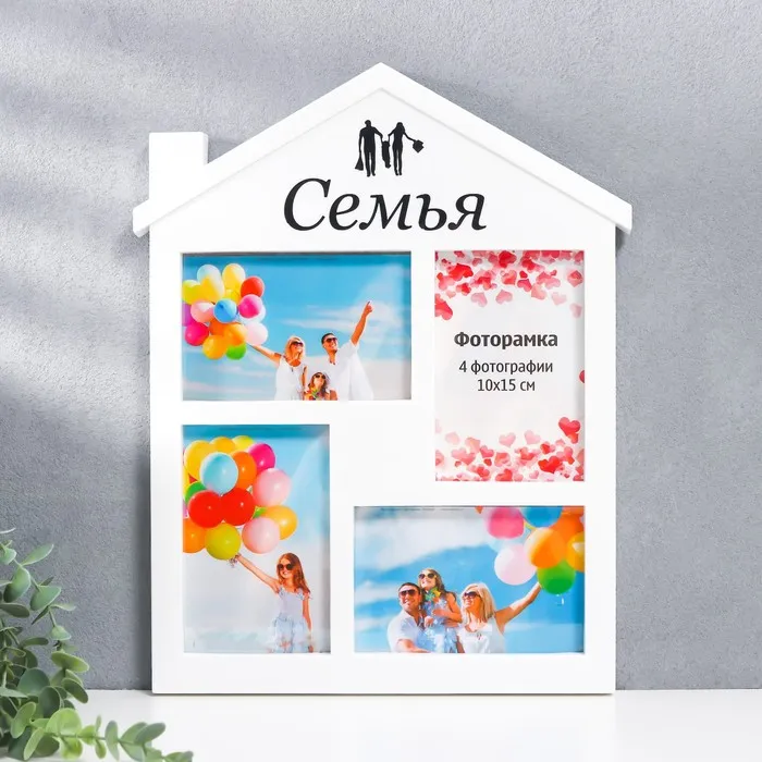 Мультирамка "СЕМЬЯ" коллаж на 4 фото 10х15 см, белый