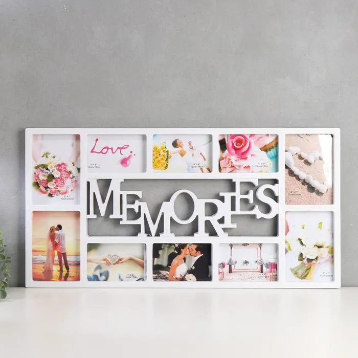 Фоторамка пластик на 10 фото "Воспоминания" белая, 13х18, 10х15 см (73х37 см)
