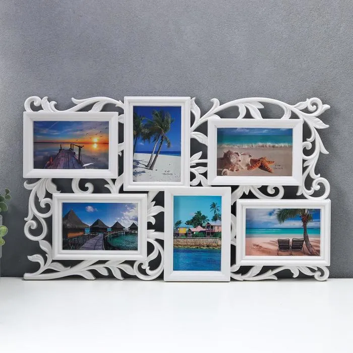Фоторамка пластик на 6 фото 10х15 см "Вьюн" белая 55х33 см