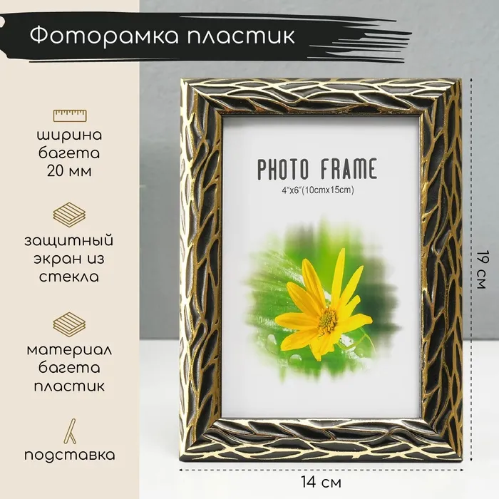 Фоторамка пластик 10х15 см "Корни" чёрная с золотом 19х14 см