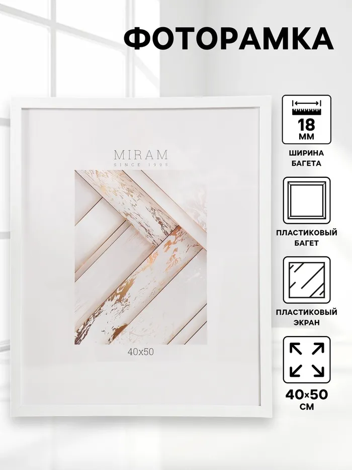 Фоторамка пластик "МИРАМ" 40х50 см 861 белый (пластиковый экран)