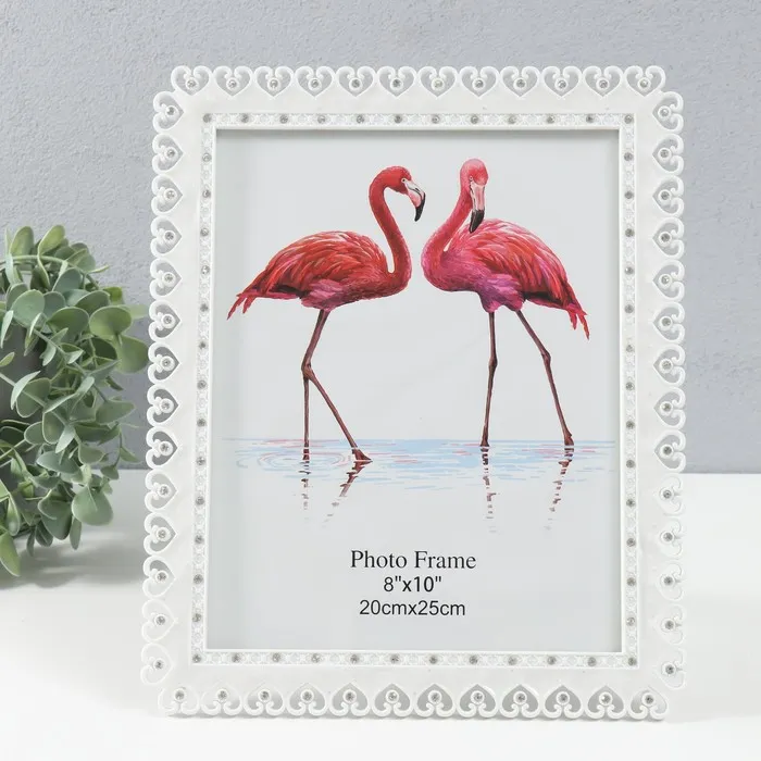 Фоторамка пластик 20х25 см "Рама из сердечек" молочная
