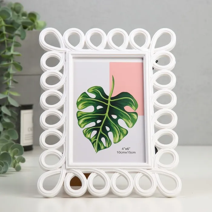 Фоторамка пластик 10х15 см "Петельки" белая 17,5х22 см