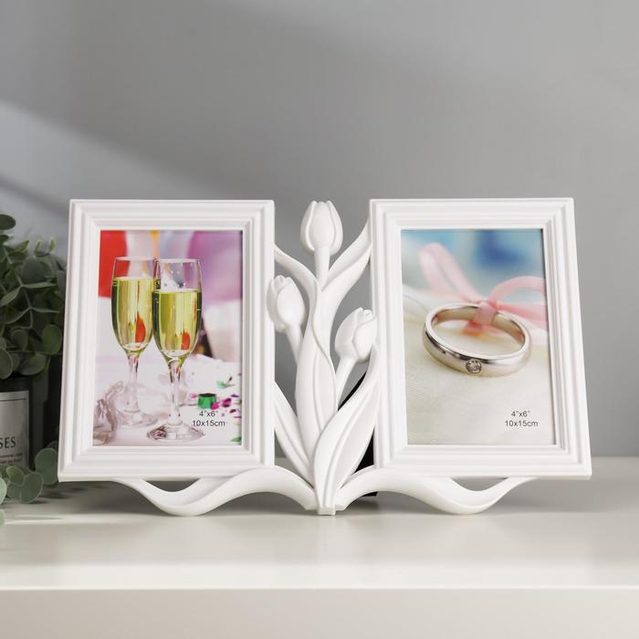 Фоторамка-коллаж на 2 фото 10×15 см «Тюльпаны», белая, 20×31 см