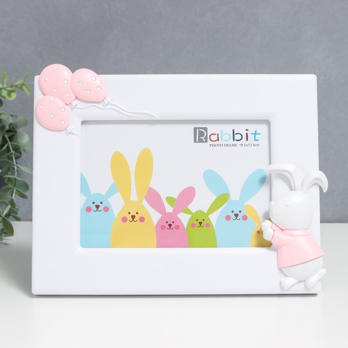 Фоторамка для фото 12×17 см «Зайчик с шариками», белая, 24×19 см