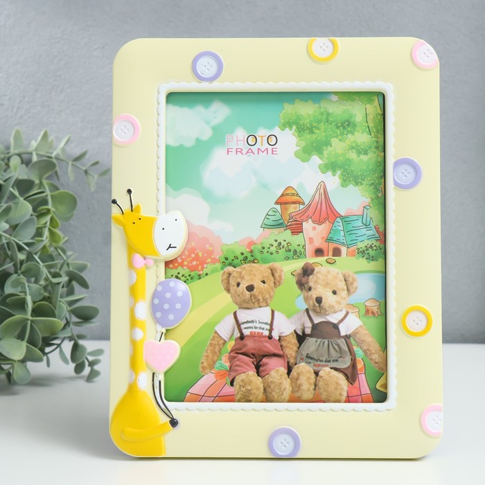 Фоторамка для фото 13×18 см «Жирафик с шариками», пластик, жёлтая, 18×23 см