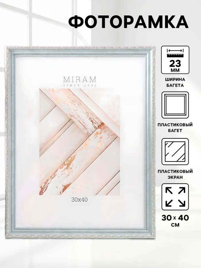 Фоторамка пластик "МИРАМ" 30х40 см, 641761 белый (пластиковый экран)