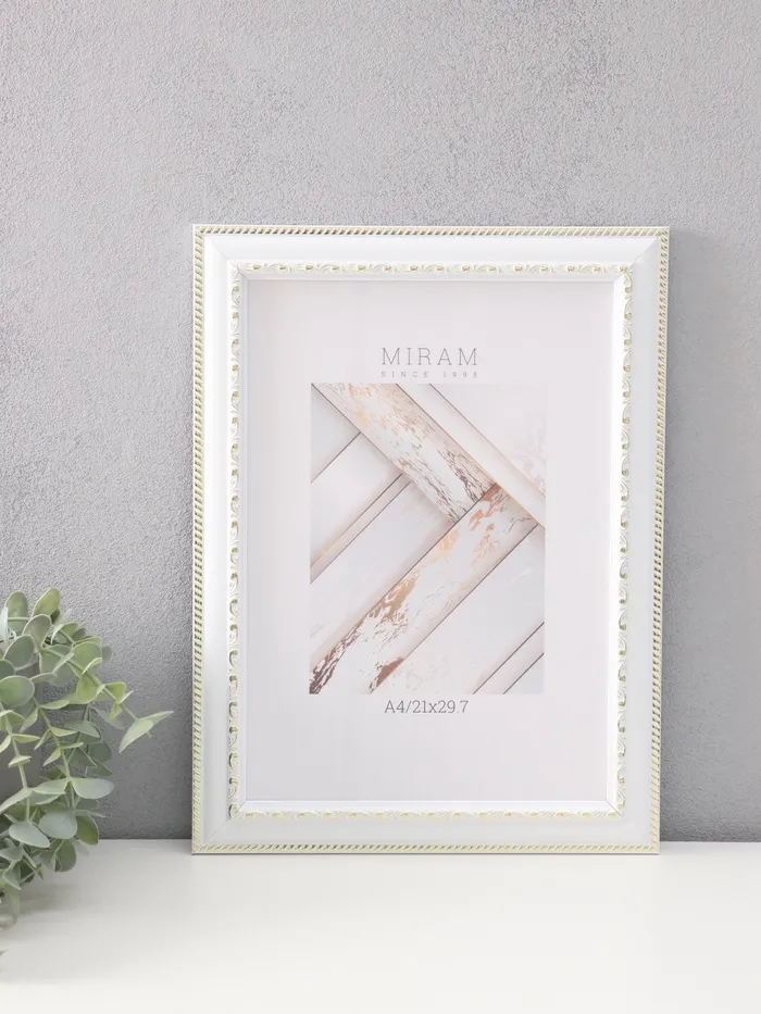 Фоторамка для фото 21×29.7 см (A4) «МИРАМ», пластик, белый с золотом