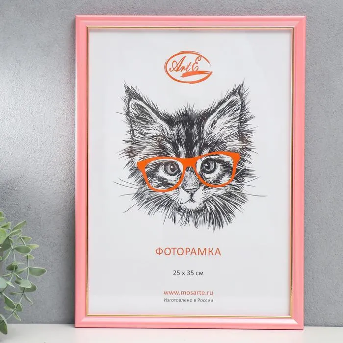 Фоторамка пластик 25х35 см, розовый с золотом (пластиковый экран)